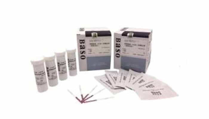 Without the disadvantage of low sensitivity and instability of color, Baso OB test is a modification of traditional pyramidon met traditional pyramidon method, presented as a kit with good  hod, presented as a kit with good sensitivity and stability. Clear sensitivity and stability. Clear- -- -cut interpretation of test  cut interpretation of test results can be made in 30 minutes after color development. It causes no reading confusion for weakly positive reactions, and is the most widely used chemical assa and is the most widely used chemical assay for occult blood detection in Taiwan and China.