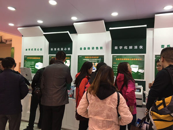 本次展會(huì)上,公司在顯著位置擺放了今年隆重推出的全自動(dòng)染片機(jī)、全自動(dòng)血型儀,多款離心機(jī)、平板式血漿速凍機(jī)、全溫控監(jiān)測(cè)數(shù)字化血漿解凍儀、麥?zhǔn)媳葷嵊?jì)等儀器設(shè)備,以及全系列的輸血試劑、檢驗(yàn)試劑、檢驗(yàn)系列染色液、病理系列染色液等產(chǎn)品,引來(lái)各地經(jīng)銷商的極大興趣和駐足參觀。
