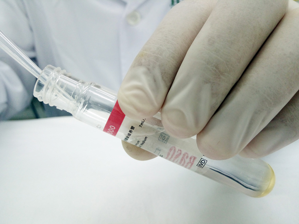 2、取上述復(fù)溶液 0.8ml加入分枝桿菌液體培養(yǎng)管中,隨后加入適量預(yù)處理過(guò)的檢體。